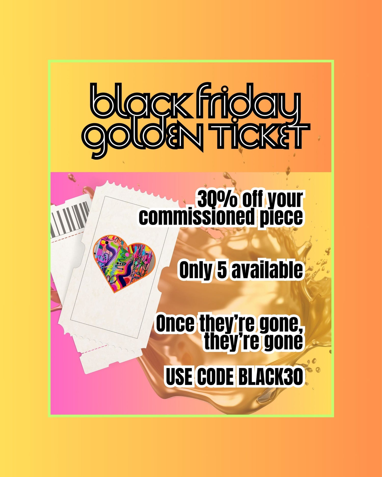 For Black Friday, I’m opening 5 discounted commission spots, and once they’re gone, they’re gone. USE CODE BLACK30 at checkout. If you’ve been dreaming about a custom artwork, now’s your moment. Only 5 available! Sale ends Saturday November 30.