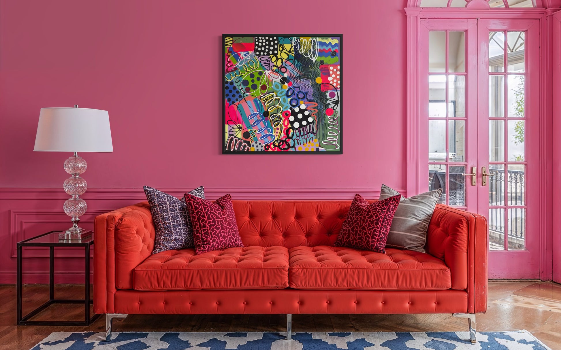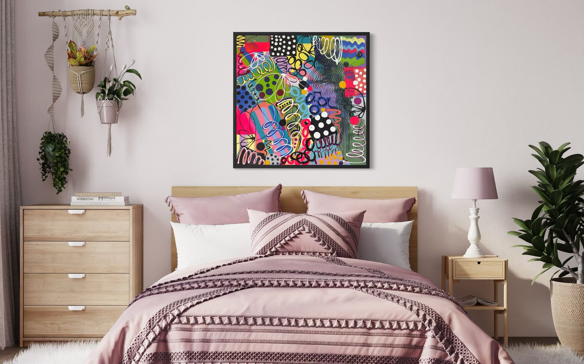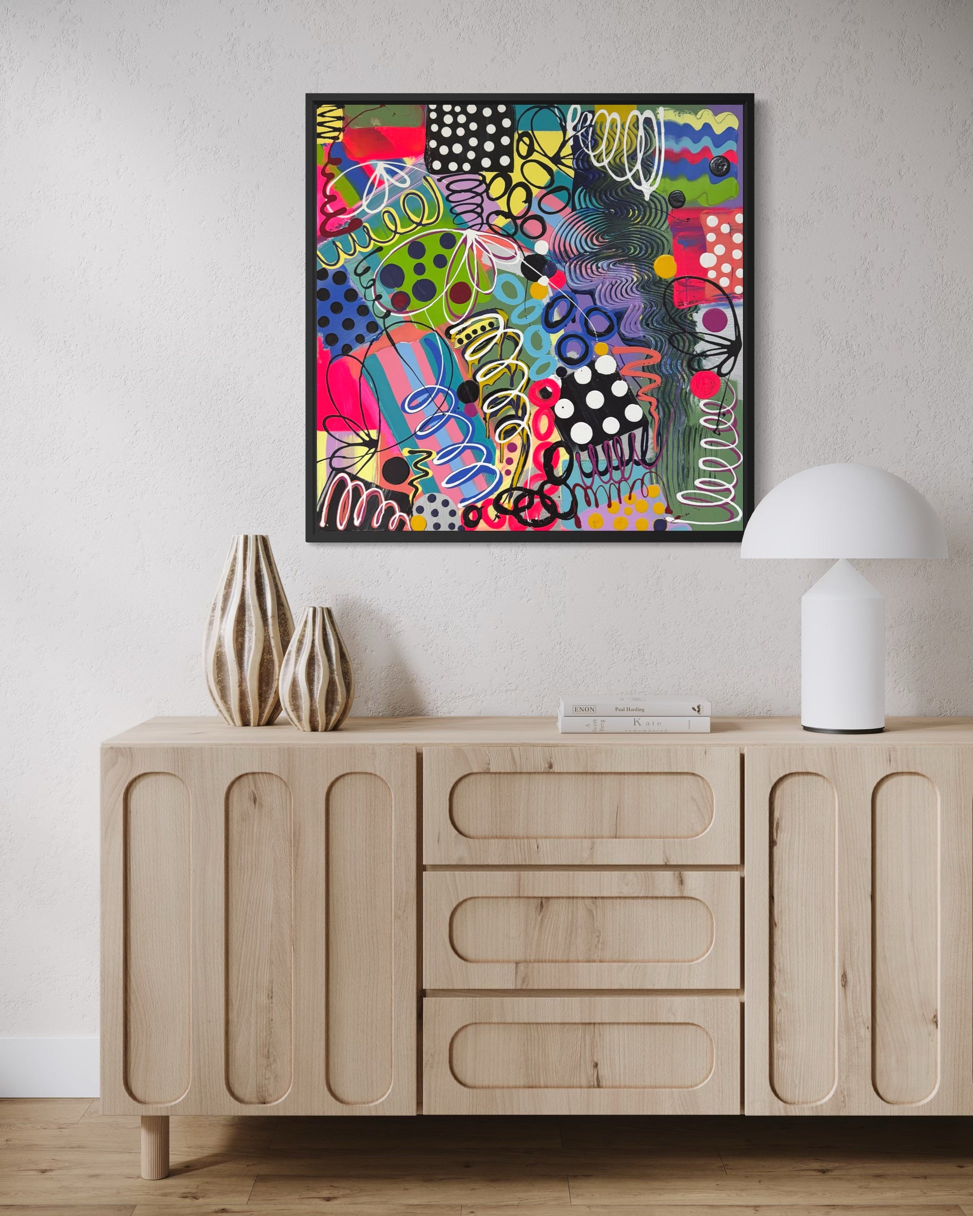 Mixed media on Italian canvas in a black oak frame, 78cm x 78cm.
