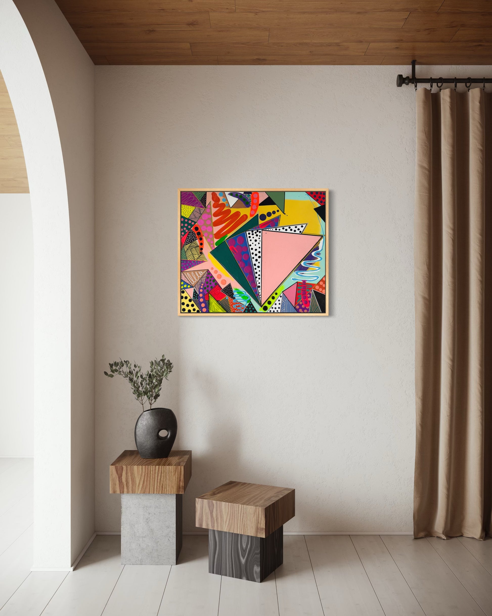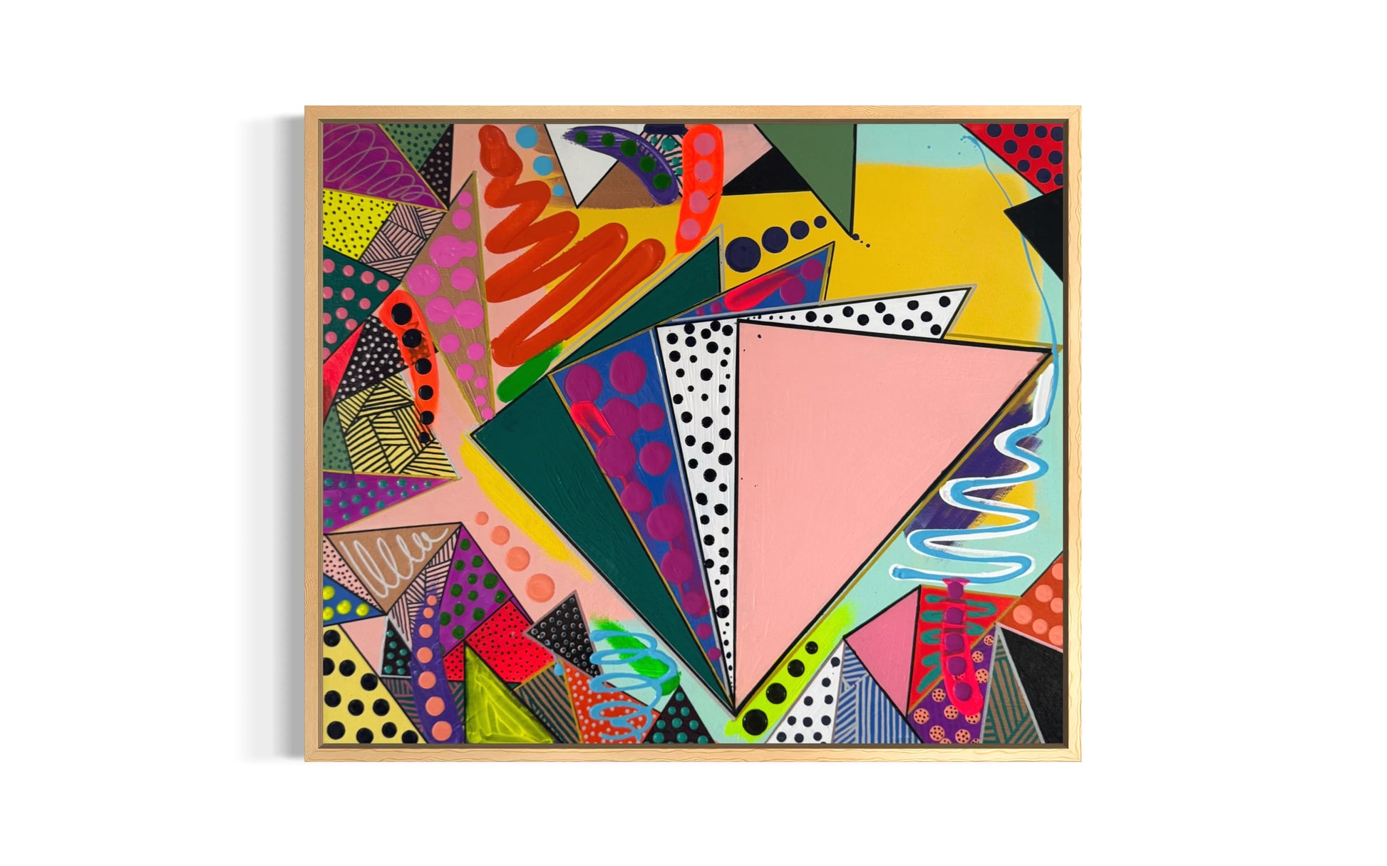 Mixed media on canvas framed in oak, 52cm x 62cm.
