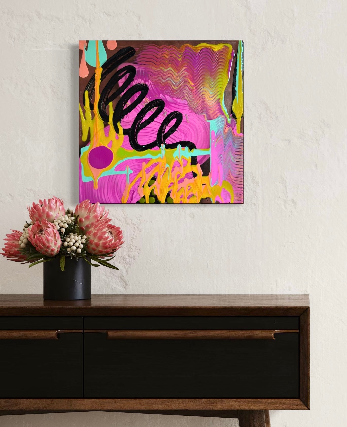 Mixed media on canvas, 30cm x 30cm.