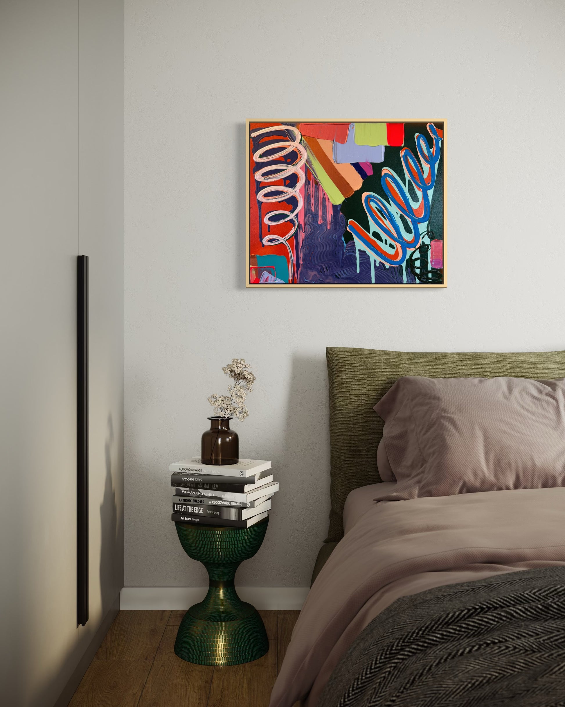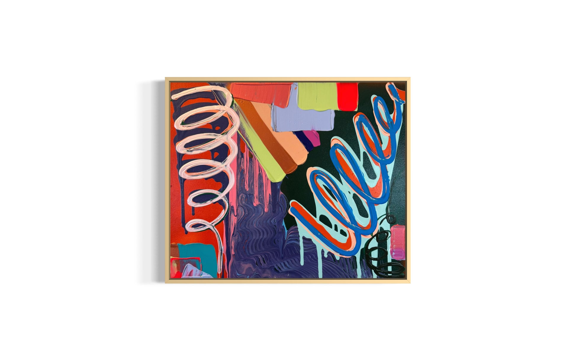 Mixed media on canvas framed in oak, 52cm x 62cm.